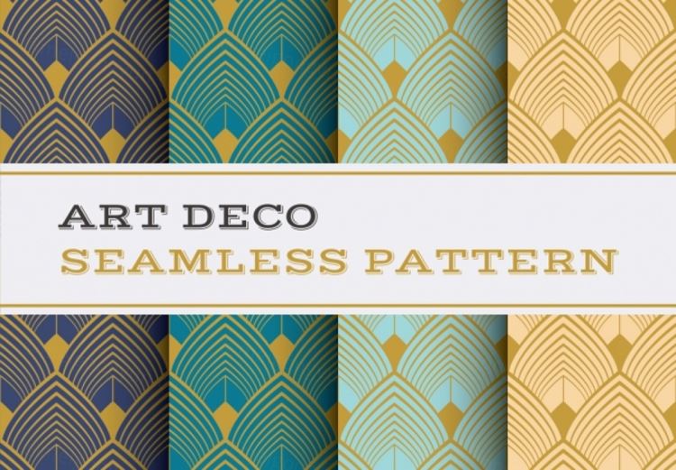 4色背景装饰艺术无缝图案矢量设计素材Art Deco seamless pattern