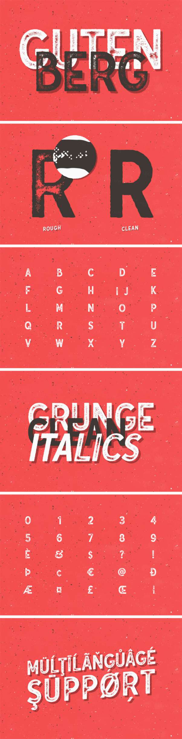 图穷联素材库 » 粗糙洗旧无衬线英文字体 Gutenberg Font Family
