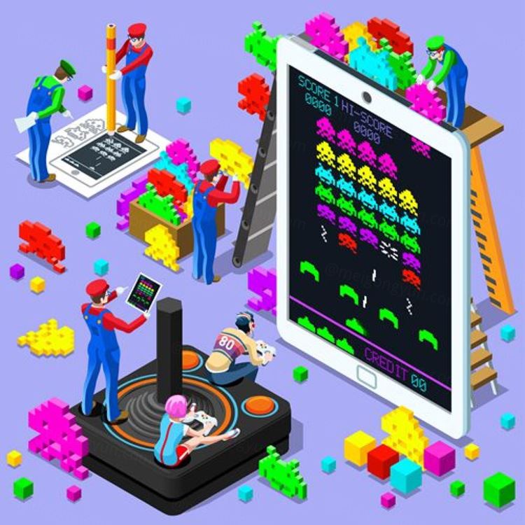 图穷联素材库 » 2.5D互联网小场景立体三维游戏视频插图图标等距人物矢量设计素材82114