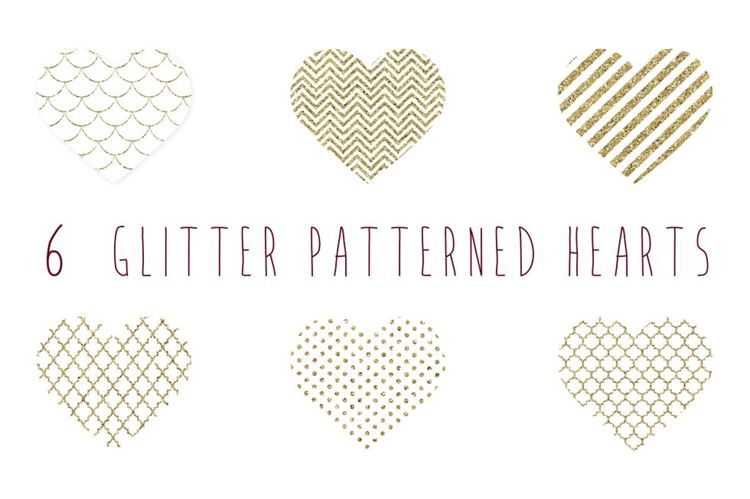 图穷联素材库 » 现代时尚爱心形状设计素材Glitter patterned gold hearts clip a