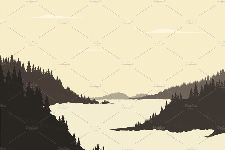 图穷联素材库 » 山区河流和森林矢量插图River mountain