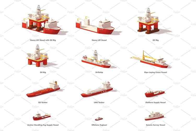 图穷联素材库 » 矢量船舶图标Vector low poly offshore oil exploration vessels