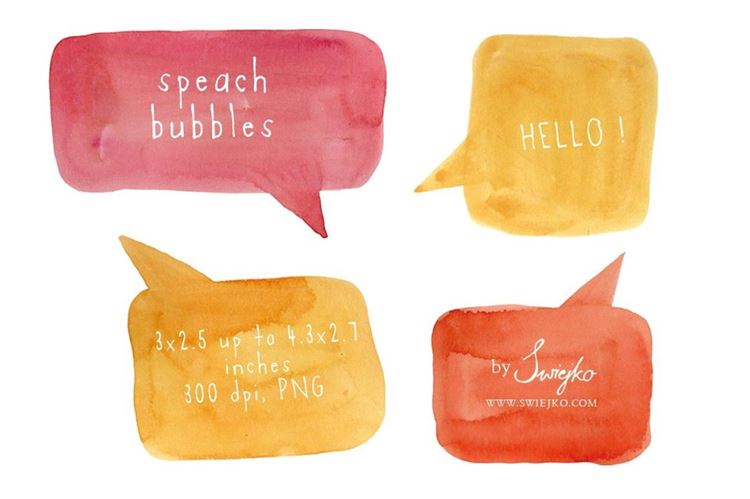 图穷联素材库 » 手绘水彩对话框设计素材Speach Bubbles , watercolor