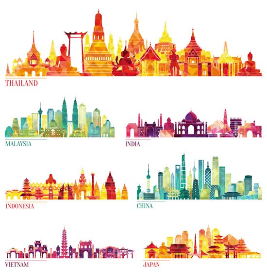 图穷联素材库 » 世界各地旅游景点城市建筑矢量插图设计素材Skyline detailed silhouette set