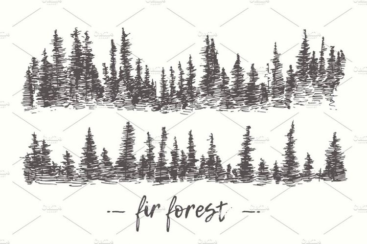 图穷联素材库 » 复古手绘森林设计素材Two illustrations of a fir forest
