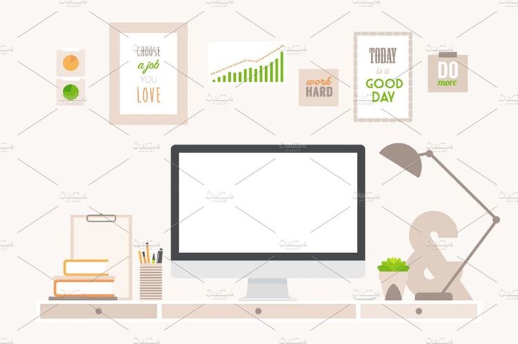 矢量卧室平面样式矢量素材Modern workspace with iMac