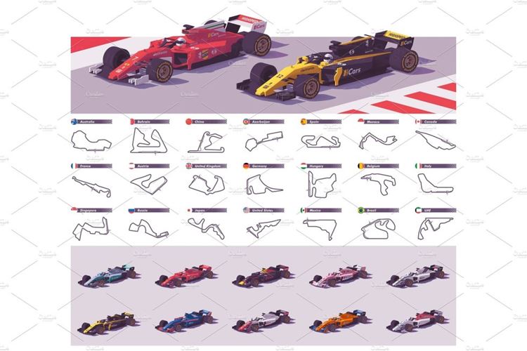 图穷联素材库 » 矢量赛车模型插图素材Vector racing tracks and cars