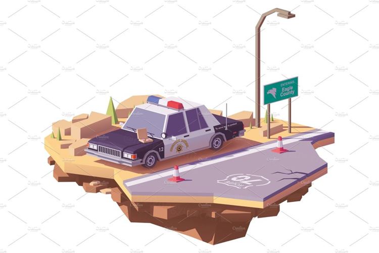 图穷联素材库 » 矢量高速公路美国警车插图素材Vector low poly classic American police car