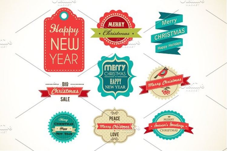 图穷联素材库 » 圣诞节促销标签矢量图案Christmas vintage labels-amp; elements