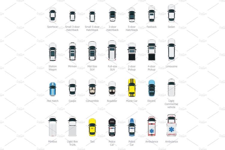 图穷联素材库 » 矢量顶视图汽车矢量插图素材Vector overhead view cars and trucks set