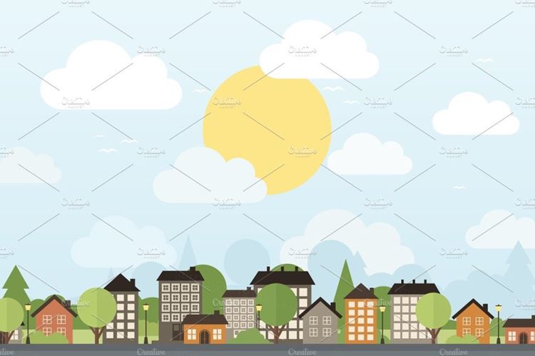 图穷联素材库 » 小镇矢量插图City and trees