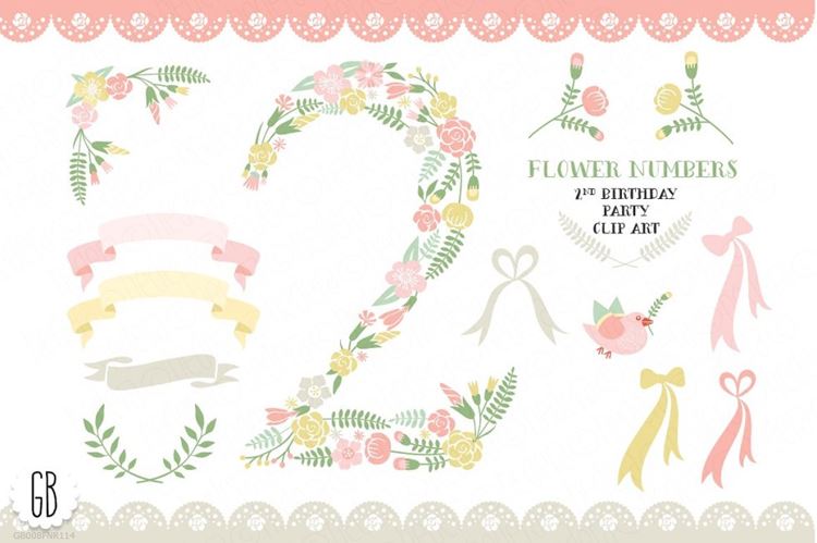 图穷联素材库 » 手绘花卉植物设计素材Floral number , 2nd birthday clip art