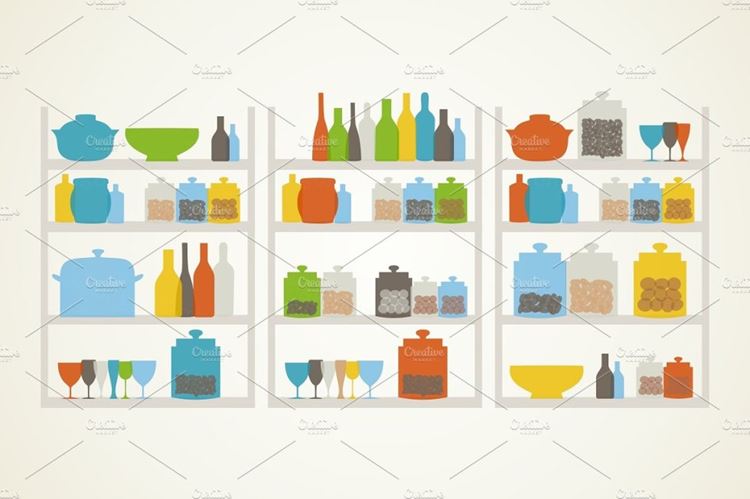 图穷联素材库 » 货架摆满了厨房用品矢量插图Shelf on kitchen