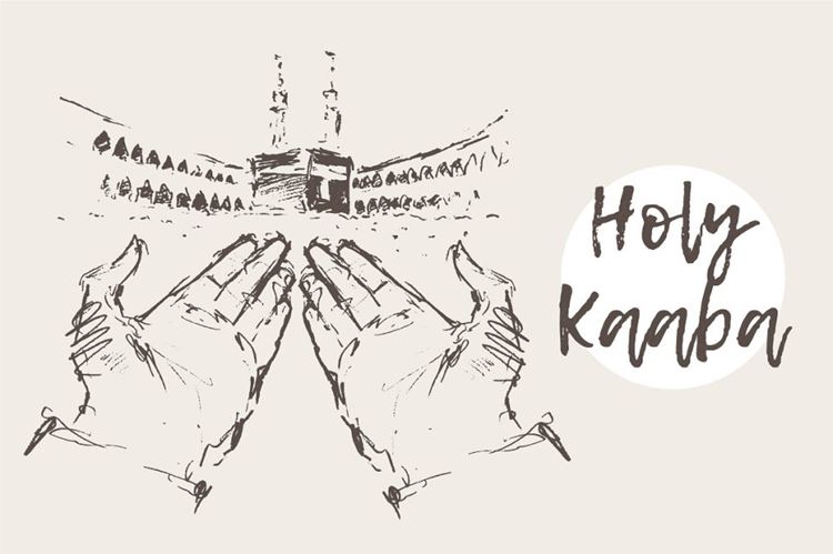 复古手绘祈祷的双手出插图设计素材Holy Kaaba with praying hands