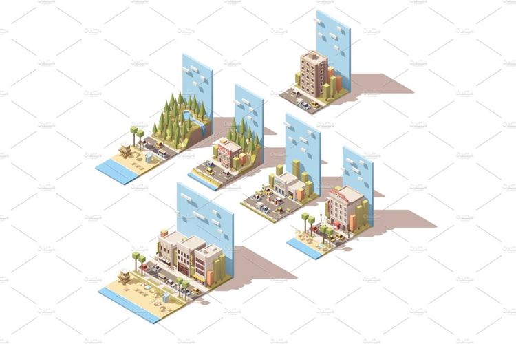 图穷联素材库 » 矢量等距旅游景点插图设计素材Vector isometric car travel illustrations