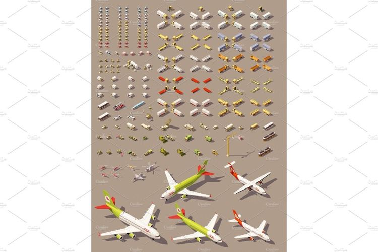 图穷联素材库 » 矢量等距运输交通工具插图设计素材Vector isometric low poly transport set