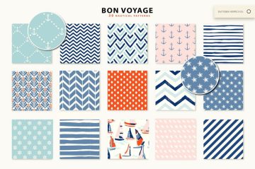 今天给大家分享的是一组夏季航海风无缝素材打包下载,几何和图形的组合,加上经典的航海图案,一定可以帮到您!