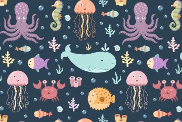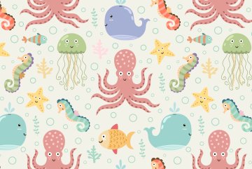 图穷联素材库 » 可爱的海洋动物矢量无缝背景素材Sea_Tales_patte