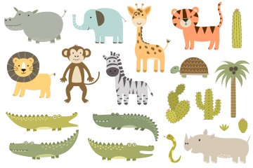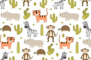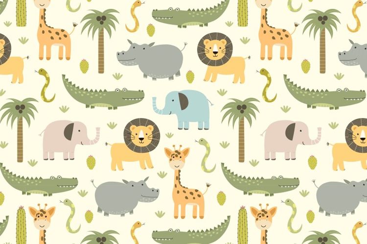 图穷联素材库 » 充满童趣的动物无缝背景素材Safari animals pa