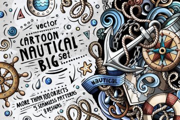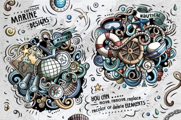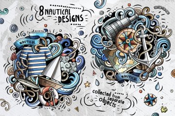 图穷联素材库 » 手绘海洋风无缝背景矢量素材打包Nautical_Cartoo