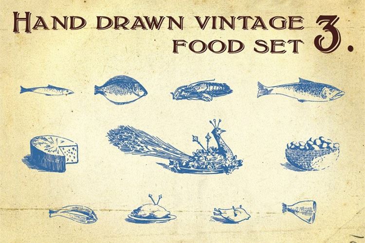 图穷联素材库 » 复古手绘食品设计素材Hand Drawn Vintage Food Set 3