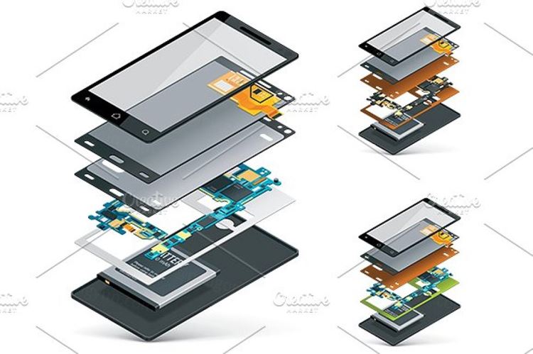 图穷联素材库 » 智能手机解剖矢量图像Isometric smartphone cutaway