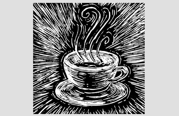 图穷联素材库 » 复古手绘咖啡杯设计图案woodprint coffee cup