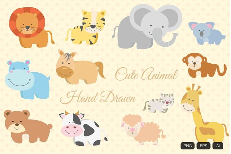 图穷联素材库 » 可爱动物插画设计素材12 Animal Hand Drawn