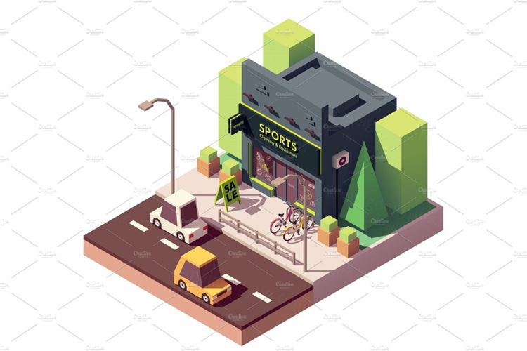 图穷联素材库 » 健身房建筑大厦插画设计素材Vector isometric sports and fitness store