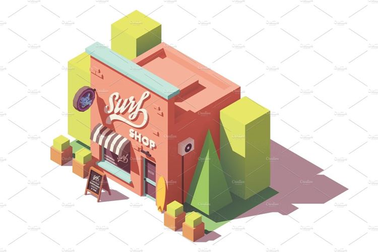 图穷联素材库 » 等量海浪设备工厂建筑大厦插画设计素材Vector isometric surf shop