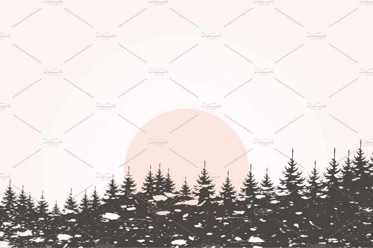 图穷联素材库 » 手绘复古冷杉森林风景矢量素材Forest landscape4