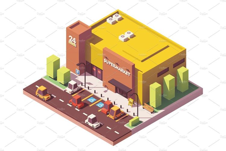 图穷联素材库 » Vector isometric low poly supermarket