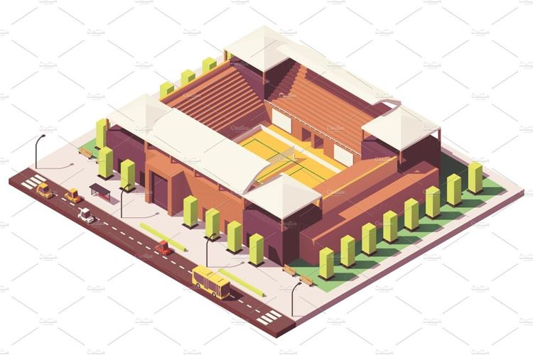图穷联素材库 » 排球体育场插画设计素材Vector low poly volleyball stadium