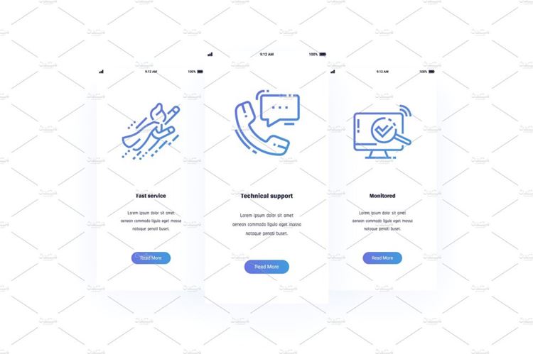 图穷联素材库 » 快捷服务/技术支持/监控图标垂直卡片设计素材Customer service Metaphors Cards