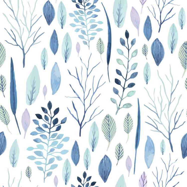 图穷联素材库 » 可爱素雅水彩无缝花卉树叶图案矢量高清背景设计素材Watercolor floral elements