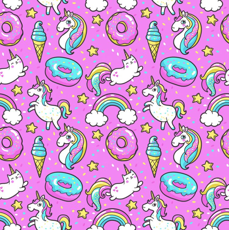 卡通漫画风格独角兽甜甜圈彩虹无缝图案矢量背景设计素材Vector background