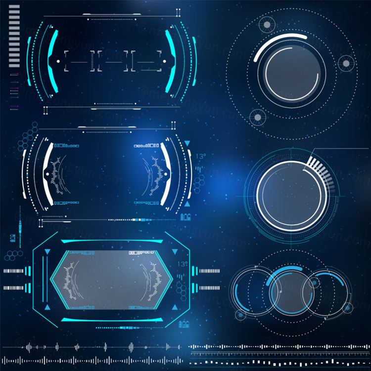图穷联素材库 » 蓝色高科技感未来主义界面虚拟现实技术矢量元素设计素材Technological HUD elements