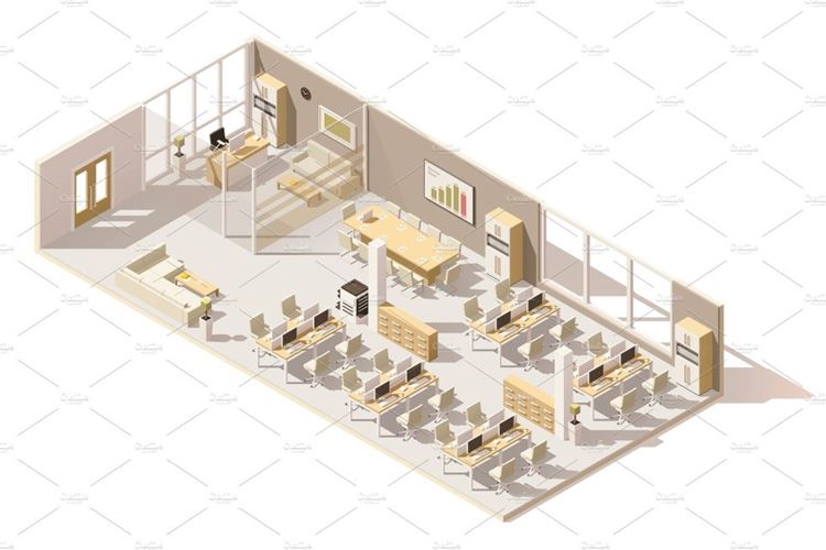 低聚办公室Vector isometric low poly office