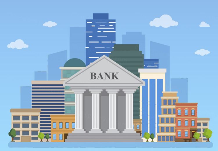 卡通手绘城市景观银行建筑矢量插图平面风格设计素材Vector illustration