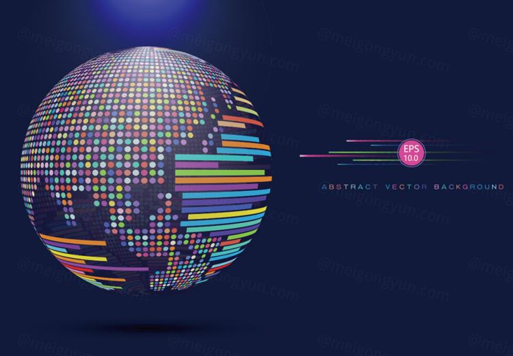 图穷联素材库 » 彩色马赛克线条组成的三维球形世界地图科学技术矢量背景图设计素材