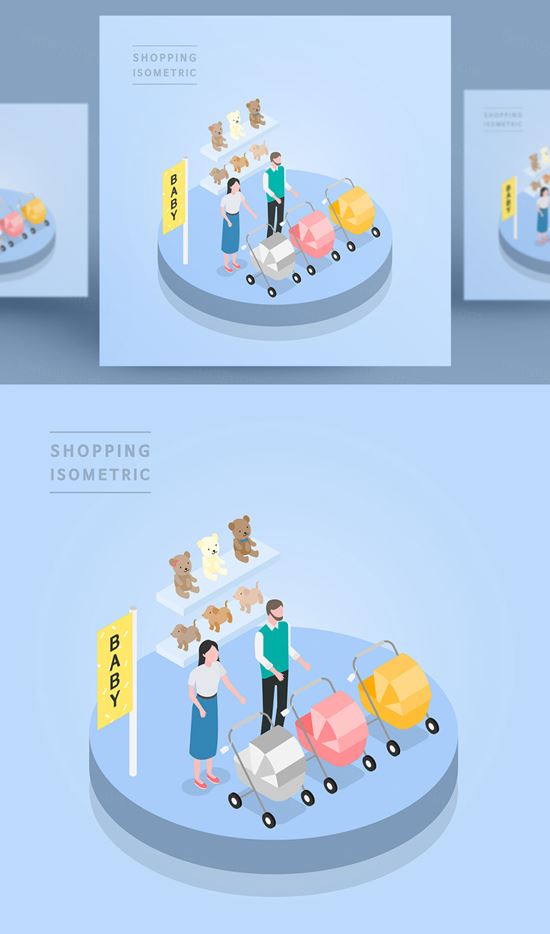 图穷联素材库 » 创意时尚彩色购物打折促销商场逛街卡通等距插图矢量设计素材91014