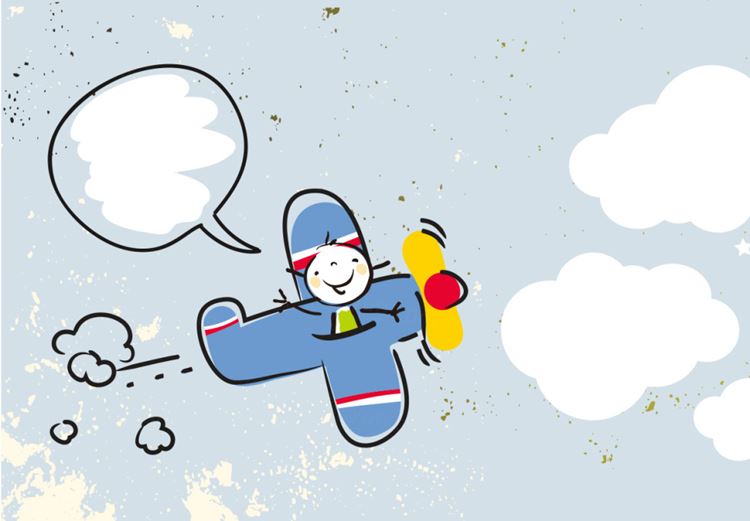 图穷联素材库 » 卡通涂鸦风格快乐的孩子飞行员蓝色飞机气球矢量插图设计素材Happy kid