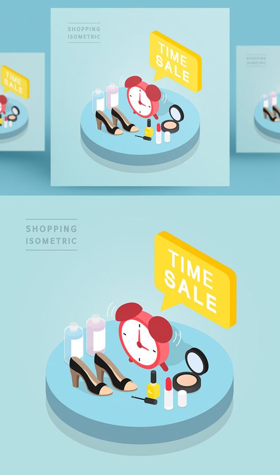 图穷联素材库 » 创意时尚彩色购物打折促销商场逛街2.5D场景卡通等距插图矢量设计素材91107