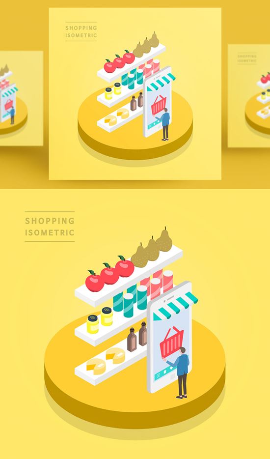 图穷联素材库 » 创意时尚彩色购物打折促销商场逛街2.5D场景卡通等距插图矢量设计素材91109