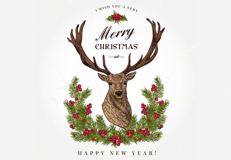 图穷联素材库 » 传统复古圣诞贺卡麋鹿松树花环圣诞新年快乐矢量插图设计素材Christmas card