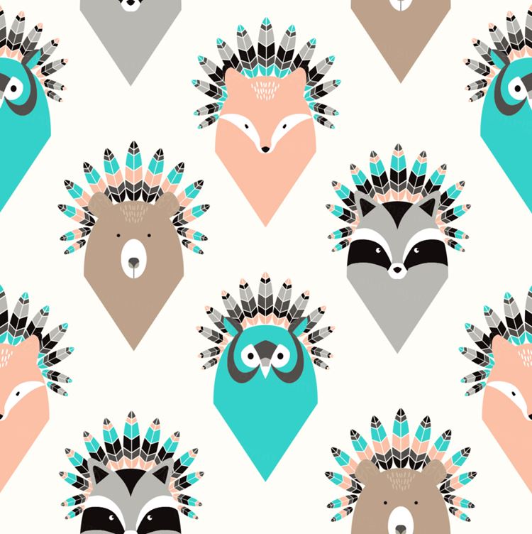 图穷联素材库 » 可爱手绘卡通动物羽毛头像图案背景矢量设计素材Animals feathers