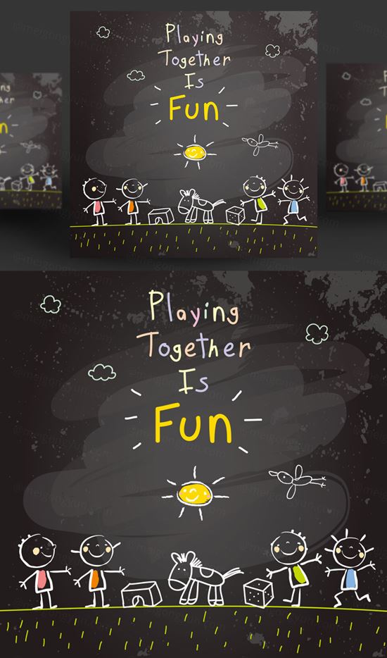 图穷联素材库 » 快乐童年儿童万宁市粉笔黑板手绘涂鸦风格素描插图矢量设计素材Happy Kids