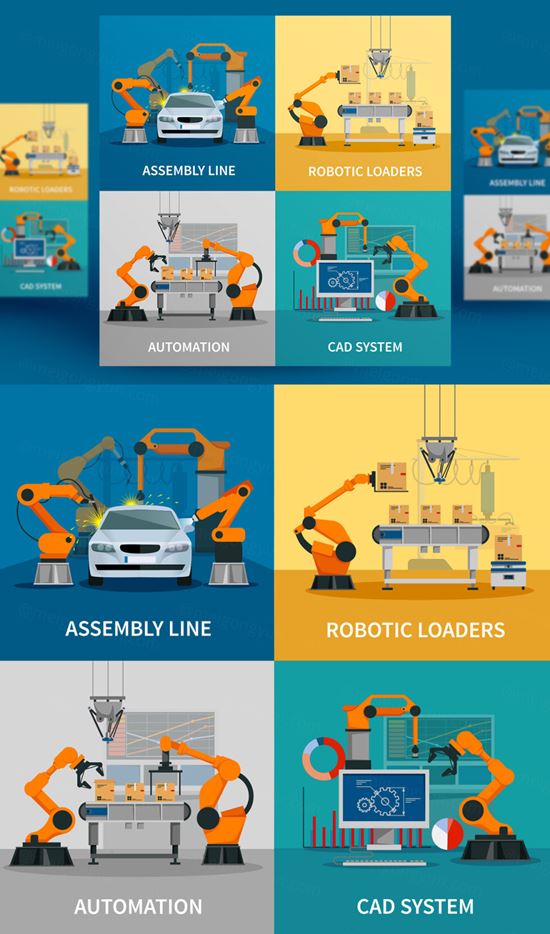 图穷联素材库 » 装配线CAD系统符号自动概念图标插图矢量设计素材Automation concept icons