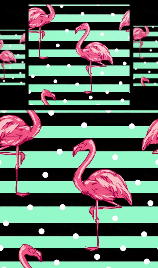 图穷联素材库 » 火烈鸟无缝热带主题图案插图背景矢量设计素材Flamingo pattern