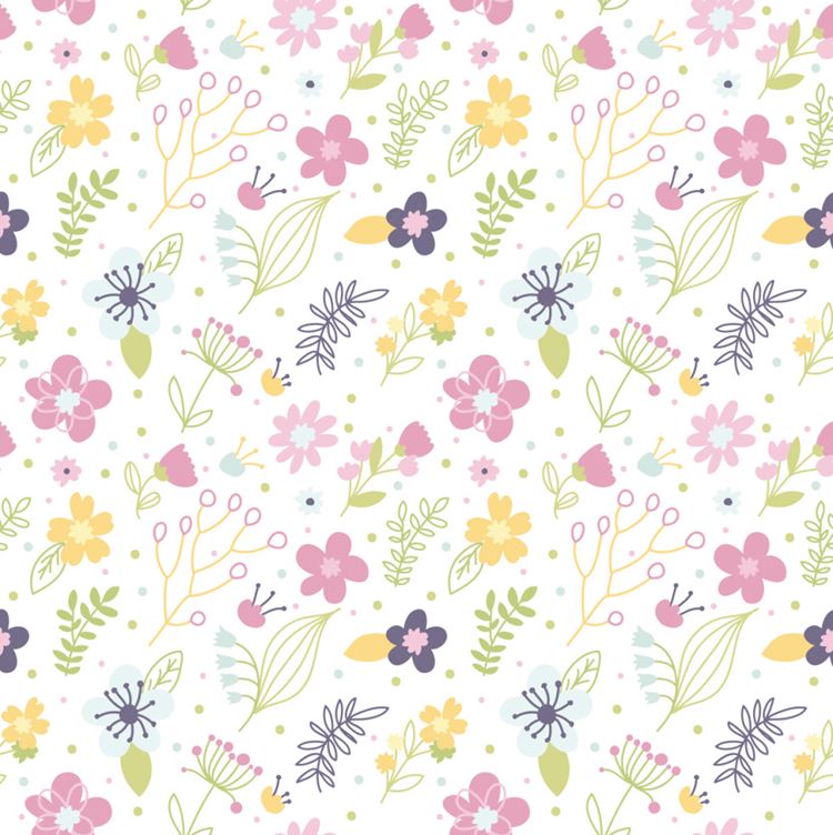 图穷联素材库 » 浪漫鲜花花卉手绘卡通无缝图案背景矢量设计素材Romantic Floral